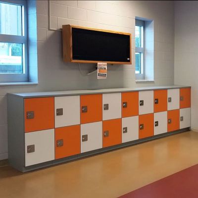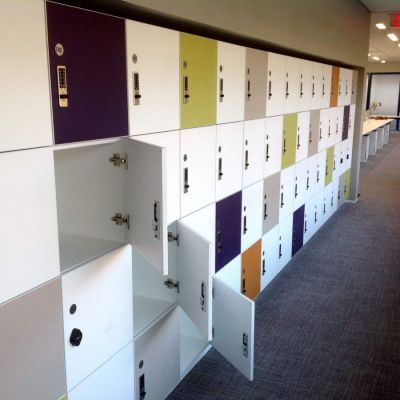 FOUR-U Contract Furniture offers lockers for all areas of your business. Color coordinated laminate personal lockers for the office areas, custom laminate lockers for your sports area locker room, metal lockers for your warehouse area, plastic lockers for your shower room areas. We space plan and customize the size, color, locking preference and finish details for your locker needs.